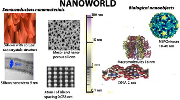 It should be noted from Figure 1 that the geometrical dimensions of the mesoporous silicon and electronics devices on the base of silicon nanowires correspond to the particle sizes 18-40 nm of numerous viruses. This fact is favorable to researches and development of sensors technology on the base of silicon nanomaterials for such viruses.