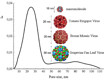 Investigated viruses are the smallest among the numerous viruses. Samples of porous silicon have a narrow pore size distribution. Experimentally, it is important to make a porous material with pore size comparable to the size of virus particles to be detected. In practice this is not always easy. There are a lot of viruses with similar and larger dimensions than plant viruses. The proposed method is based on the presence of the electrical effect between the fibrous structures of the mesoporous silicon is the most simple method for environmental studies for the presence of pathogenic viruses. The applicability of the method to relatively large viruses such as Papillomavirus (460 nm) is not so obvious. It is necessary to check the entire spectrum of viral particles to find the size of the upper limit that can be detected by the proposed method.