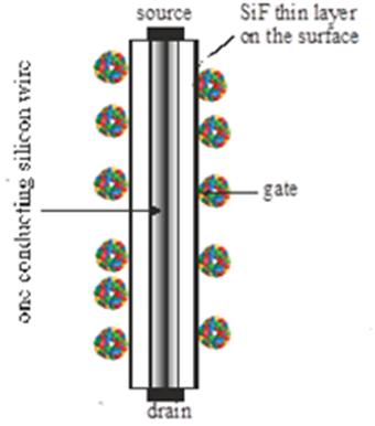 Figure 5 (a) shows a 3D technology DG MOSFET nanotransistor on the base of silicon nanowires and electronic characteristics of nanoparticles with biological adsorption (b).