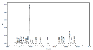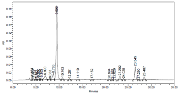 Samples were reconstituted in methanol/dichloromethane (1ml, 50:50 v/v) and 100µl were injected into the HPLC. A waters HPLC system (Water Corporation, Milfored, MA) consisting of a Guard – column, C30 YMC Carotenoid column (4.6 x 250mm, 3µ) water 626 binary HPLC pump, 717 Auto sampler and a 2996 photodiode array detector was used for carotenoids quantification. Solvent A consisted of methanol/water (92:8v/v) with 10mm ammonium acetate. Solvent B consisted of 100% methyl tert – butyl ether. Gradient elution was performed at 1ml/min with the following conditions: 29min linear gradient from 83% to 59% A, 6min linear gradient from 59% to 30% A, 1min hold at 30% A, 4min linear gradient from 30% to 83%a, and a 4min hold at 83% A.